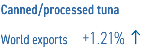 La demanda mundial de atún semiprocesado y listo para el consumo se mantuvo latente durante los primeros seis meses de 2024, particularmente en los mercados occidentales de América del Norte y Europa, a pesar de que no hubo un aumento significativo en los precios de las materias primas. En consecuencia, las exportaciones mundiales de atún procesado y enlatado durante enero-junio de 2024 aumentaron solo marginalmente a 748 542 toneladas (+1,21 por ciento) por un valor de USD 4.32 mil millones.