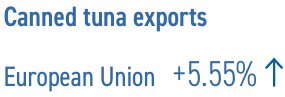 En cuanto a las exportaciones de atún enlatado y procesado de la Unión Europea, hubo un aumento del 5,55 por ciento hasta 133 212 toneladas (943,36 millones de dólares) durante enero-junio de 2024 en comparación con el mismo período de 2023. Los principales exportadores fueron España, el Reino de los Países Bajos, Italia y Portugal.