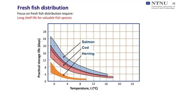 El número de días que un filete de pescado se mantiene fresco en el refrigerador depende tanto del tipo de pescado como de la temperatura. Ilustración: Trygve Eikevik, NTNU
