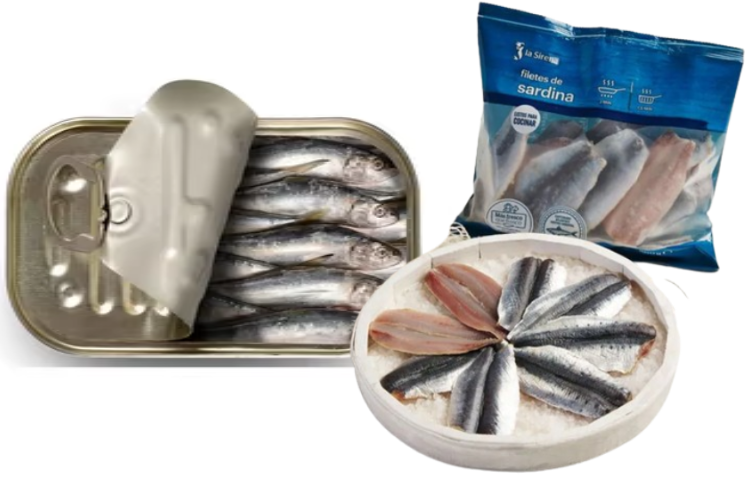 Filete de sardina congelada IQF para su uso en plantas conserveras. Foto: Guanches del Atlántico