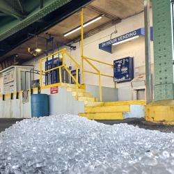 The Cost Survey team collects data on ice, one of the expenses of commercial fishing. Credit: NOAA Fisheries/Heather Soulen -->