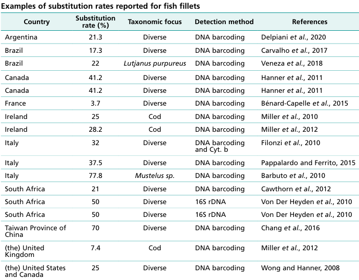 Aquatic foods are highly susceptible to fraud due to wide price differences and difficulty for consumers to detect fraudulent practices.