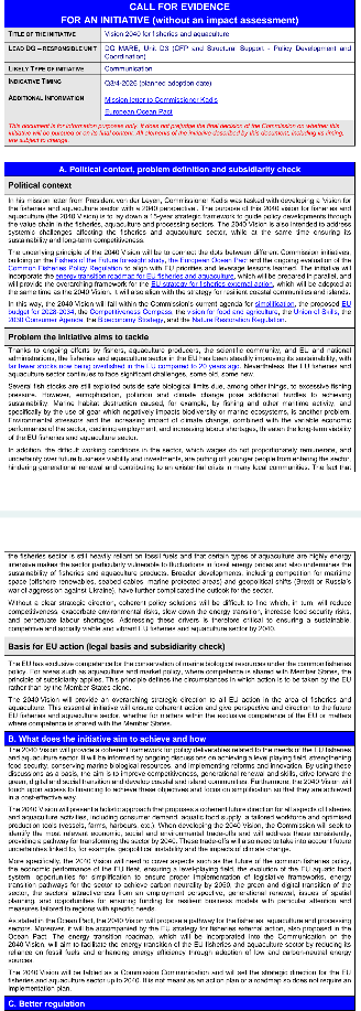 欧盟委员会(European Commission)已启动一项征求意见(call for evidence),就即将制定的**《渔业和水产养殖业2040愿景(Vision 2040 for Fisheries and Aquaculture)》征集利益相关方、专家和公民的意见。该战略旨在为未来15年**制定全面指导框架。