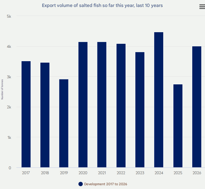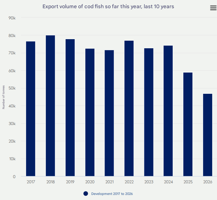 - Exports of frozen cod saw one of the sharpest declines.