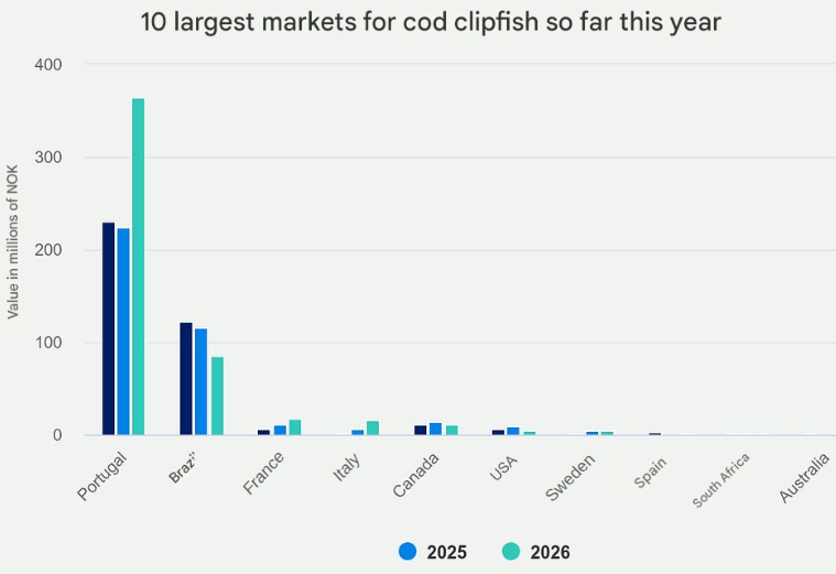 Portugal continues to strengthen its position as the largest market for Norwegian cod clipfish.