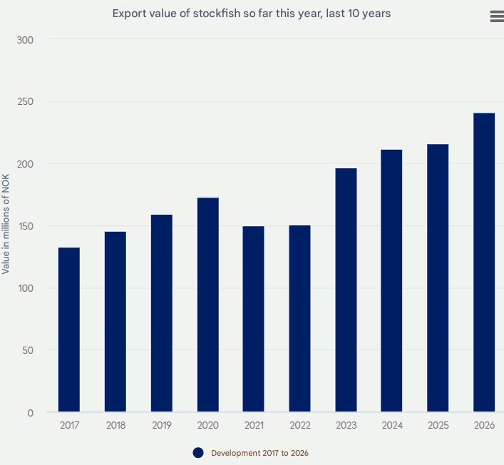 - Exports of stockfish recorded growth in both value and volume.