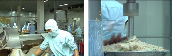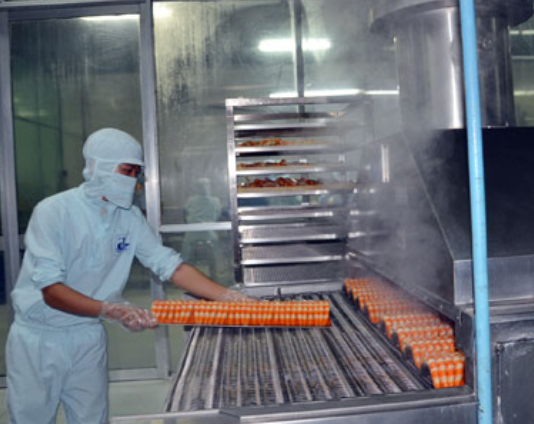 Workers at Phuoc Co Seafood Processing Plant (Coimex Company) operate the shrimp steaming line after surimi processing. Photo: HOANG DUNG