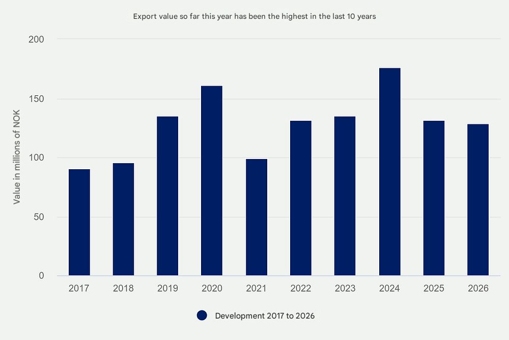 - Norway exported 342 tonnes worth NOK 123 million (about US$11.5 million) in February, representing a 19% increase in value and 4% growth in volume year-on-year.