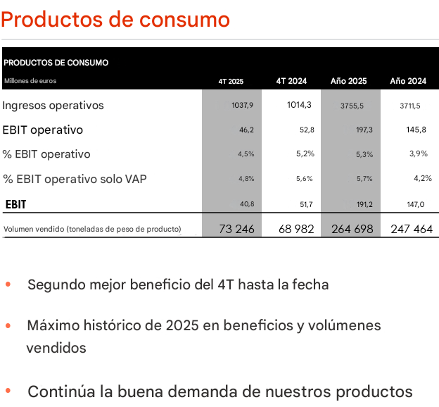 La división de procesamiento y productos de valor agregado del grupo, Mowi Consumer Products, alcanzó un EBIT operativo de €197 million (aproximadamente $215 million USD) en 2025, junto con volúmenes récord de 265,000 tonnes (peso de producto).