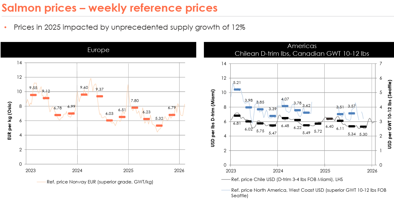 De cara al futuro, Mowi espera que el crecimiento de la oferta se normalice en torno al 1% en 2026, con un crecimiento anual a largo plazo proyectado de apenas 1–2% debido a restricciones regulatorias, límites ambientales y barreras tecnológicas en regiones clave como Noruega y Chile.
