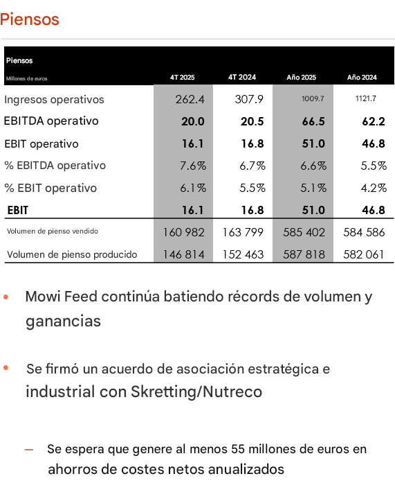 Un movimiento estratégico clave durante el cuarto trimestre fue la firma de un acuerdo de asociación industrial con el productor de alimento para peces Skretting, propiedad de Nutreco. Se espera que el acuerdo genere al menos €55 million (aproximadamente $60 million USD) en ahorros netos anualizados, asegurando alimento de alto rendimiento al menor costo de la industria.