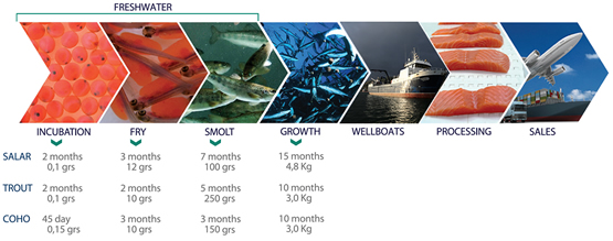We are vertically integrated "from egg to plate", which means we fully participate at a key level of the value chain, such as: hatchery, fresh water, wellboats fleet, confidence from our customers.