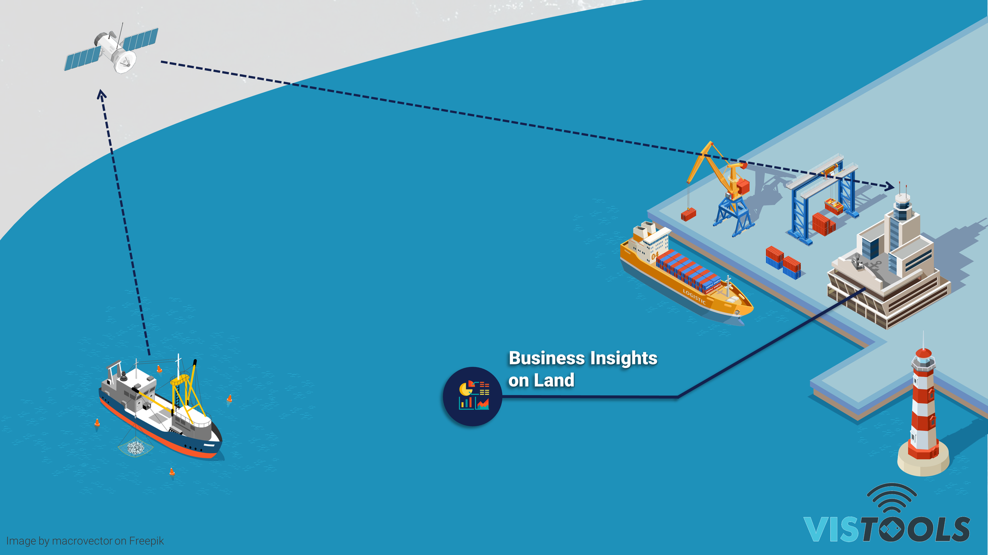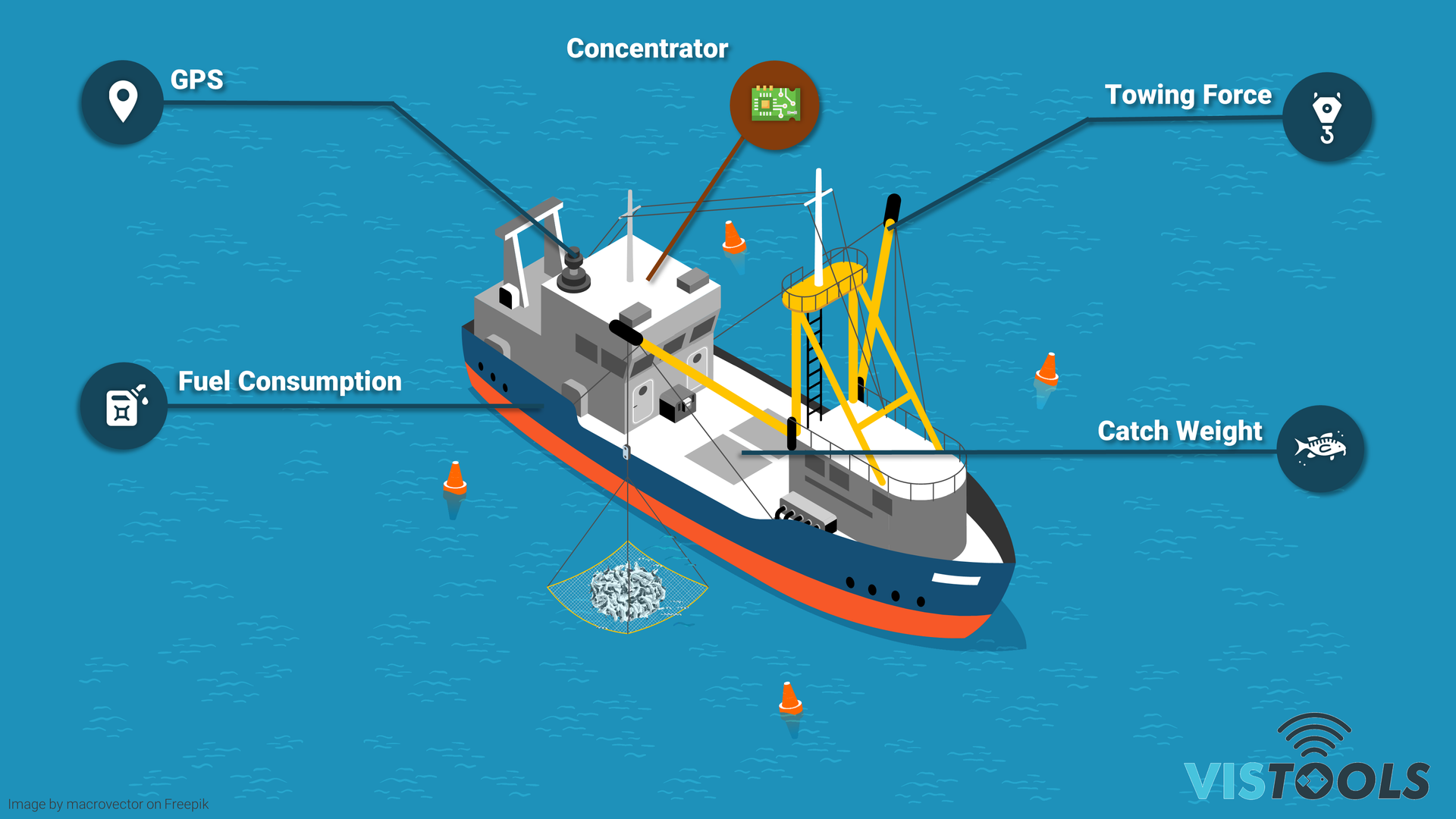 El análisis de VISTools muestra las operaciones pesqueras en tiempo real de un buque mientras está en el mar al propietario del buque en tierra. Esta herramienta interactiva proporciona información empresarial esencial sobre las capturas por especie y el consumo de combustible durante la navegación y la pesca. Esta información se puede agregar a nivel de viaje o desagregar por lances y días específicos en un viaje de pesca. Esto se logra instalando sensores en los buques y acoplando estos datos para obtener información sobre las operaciones. Estos sensores incluyen una báscula que pesa las capturas por especie, un sensor en el motor que registra el consumo de combustible, un sensor en la red que mide la longitud de la cuerda y la fuerza de tracción, y ubicaciones GPS. Se instala un dispositivo adicional en el buque que armoniza todos los datos que provienen de los sensores antes de enviarlos a la nube para su procesamiento y análisis. La información procesada se visualiza en un panel interactivo a través de PowerBI.