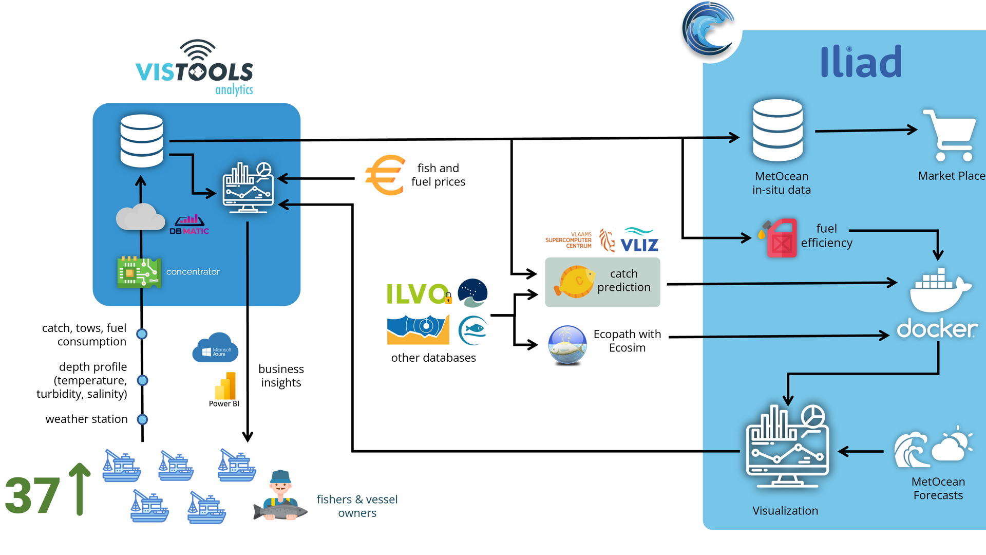 VISTools es el proyecto piloto de pesca del Mar del Norte de Iliad, cuyo objetivo es proporcionar distintas herramientas de apoyo a la toma de decisiones para ayudar a la flota belga en sus operaciones. Esto se logrará mediante la recopilación de datos en tiempo real y la implementación de modelos predictivos. Este proyecto piloto está desarrollando actualmente tres herramientas, a saber: análisis, idoneidad para la pesca y enrutamiento de buques.