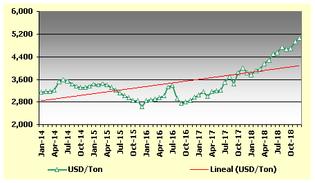 The CIF average price of catfish and tilapia fillets imported in December was USD 5,053 per t, 2 per cent superior to that in November and 32 per cent superior to that in October 2017. In 2018 it reached an average of USD 4,503 per t, which is 32 per cent higher than that in the same period during the previous year.