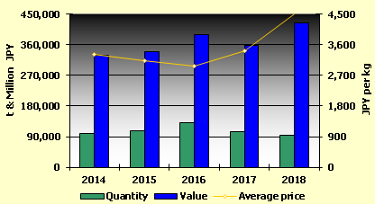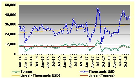 In 2018 they amounted to 94,200 tonnes for USD 424,181,000, which is 10 per cent lower than in volume but 18 per cent higher in value than that in the previous year.