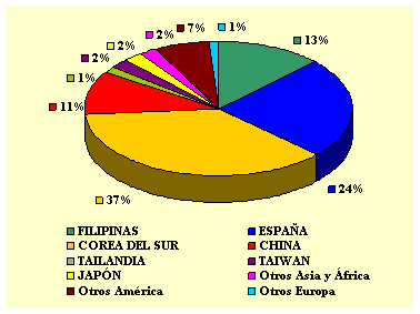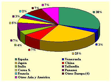 El mejor proveedor de calamar en enero 2011 fueron los EEUU con el 78% del total del volumen importado. Corea del Norte quedó en segundo lugar con el 4%.