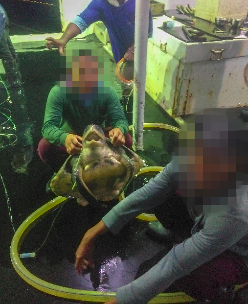 EJF described that aboard another vessel, which was under Taiwanese ownership but flying a Panamanian flag, the crew reported illegally killing turtles and dolphins.