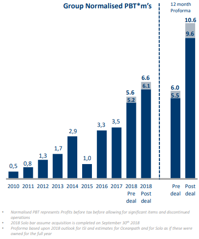 ISI attributes these better results to the incorporation of Oceanpath in Ireland from mid-March 2018 and of Icelandic Iberica in Spain from mid-September 2018 combined with strong underlying organic growth.