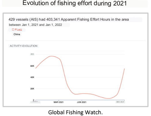 *The apparent fishing effort is obtained from the AIS transmissions of the vessels taking into account a navigation speed in parameters that coincide with the fishing speeds. Also, not all vessels keep their AIS on all the time, so there may be undetected fishing effort, as well as the presence of undetected vessels.