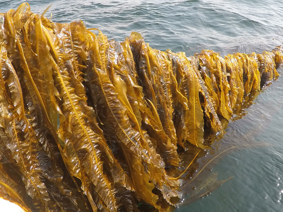 In an IMTA system, plants, shellfish and invertebrates that grow on sunken long lines and suspended baskets consume food waste and feces from finfish (usually salmon) pens that sit just below the water’s surface. The fish farmers can then harvest and sell the salmon, and also the plants, shellfish and invertebrates.