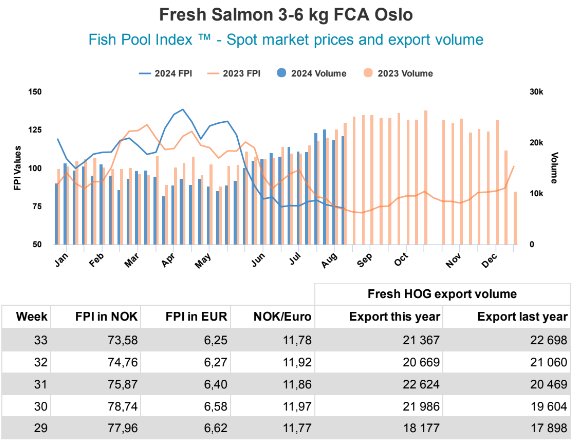 Informe de estado del precio del salmón de Fish Pool para la semana 34