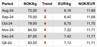 - Comprador de agosto a diciembre del 24 a 78,00 NOK/kg