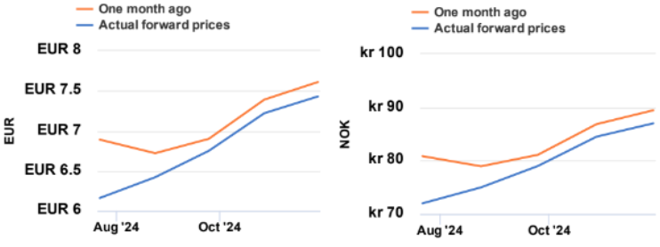 Los precios a plazo reflejan las expectativas de los miembros de Fish Pool para los próximos 24 meses. Los precios se evalúan por los contratos que se hayan celebrado, y por el interés de compra o venta en Fish Pool, y son sólo orientativos.