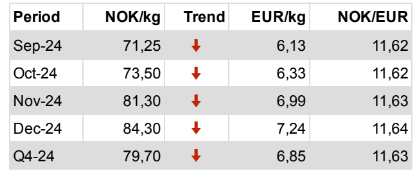 - Sep24-Nov24 último precio negociado a 75,75 NOK/kg.Vendedor ahora a 75,75