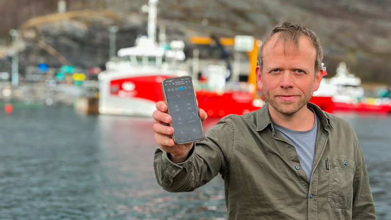Fishtalk ya está disponible directamente en tu navegador. Lars Martin Sandvik Aas muestra el acceso móvil en una granja. Foto: Grupo AKVA.