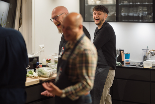 Jonny Smith and Simon Hulstone cooking in Chef Gunnar Jensen's kitchen. Photo: Norwegian Seafood Council