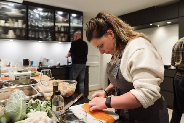 April Partridge cooking in chef Gunnar Jensen's kitchen. Photo: Norwegian Seafood Council