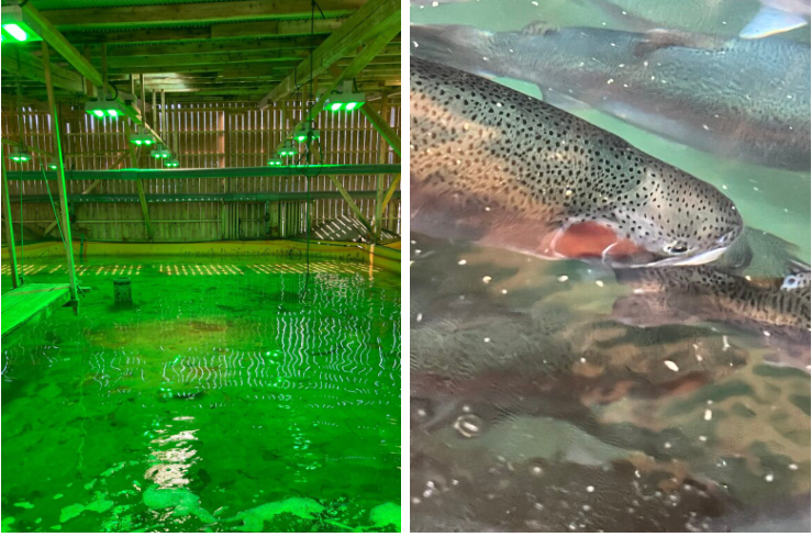 Towa Suisan experimenting with aquaculture using green LED lights, which accelerates growth and shortens the time to shipment