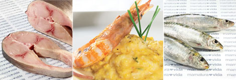 | Longline swordfish steak, Argentinian red shrimp and Cantabrian sea sardines |