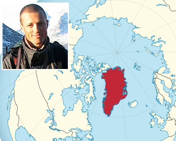 Rasmus Berg Hedeholm and Greenland map (Photo Credit: TUBS CC BY-SA 3.0 /FIS)