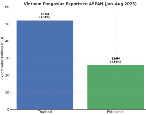 El potencial del mercado ASEAN tampoco puede pasarse por alto. En los primeros 8 meses de 2025, las exportaciones de panga a Tailandia alcanzaron los 52 millones de dólares USD, un impresionante aumento del 31%, mientras que las exportaciones a Filipinas llegaron a los 26 millones de dólares USD, también un 31% más que en el mismo período del año anterior. Estas cifras subrayan la fuerte demanda regional y las perspectivas de crecimiento.