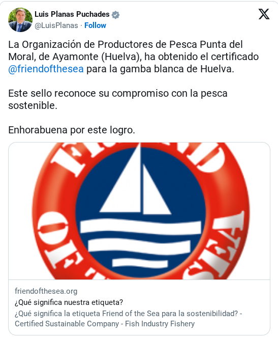 Via his official X account, Planas recognized the achievement, highlighting the commitment of the Ayamonte (Huelva) fleet to excellence and the sustainability of its practices.
