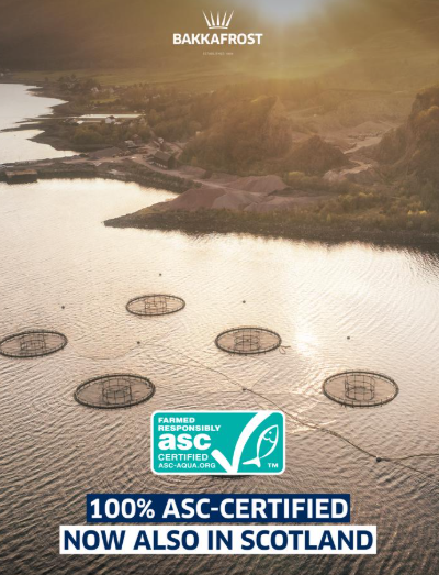 El Grupo Bakkafrost ha alcanzado oficialmente un hito de sostenibilidad al lograr la certificación 100% ASC en todas sus operaciones de cultivo de salmón en las Islas Feroe y Escocia.