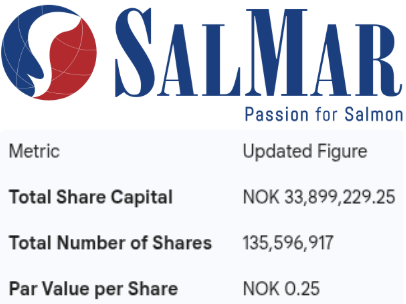 Following the registration of these new shares in the Norwegian Register of Business Enterprises, SalMar’s financial structure will be updated as follows: