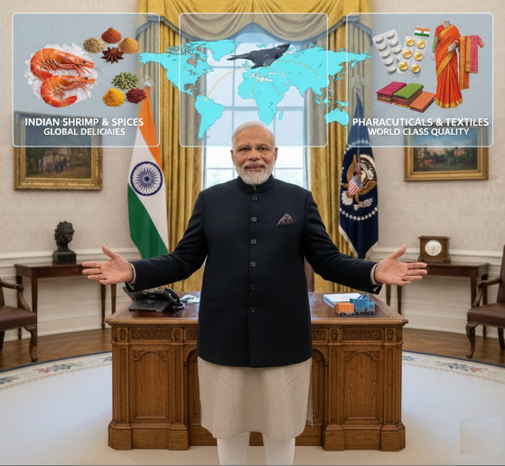 New Delhi/Washington, D.C. — In a significant trade development, the United States has reduced tariffs on Indian goods, including white shrimp, to 18% , providing major relief to exporters who had been severely impacted by punitive tariffs. This move stems from an agreement reached between U.S. President Donald Trump and Indian Prime Minister Narendra Modi aimed at easing bilateral trade tensions and strengthening economic cooperation.