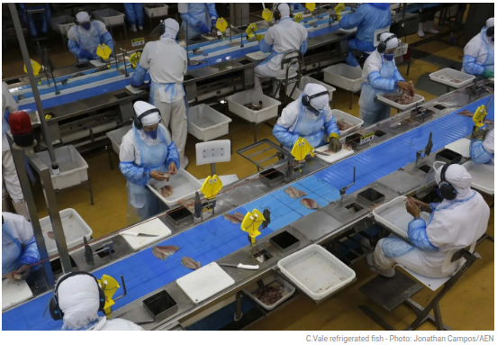 工业加工与增长步伐保持一致。位于 巴拉那州 的 Palotina 和 Nova Prata do Iguaçu 加工厂共加工 5,420万公斤罗非鱼,同比 2024年增长13.97%。由此生产出 2,200万公斤成品。