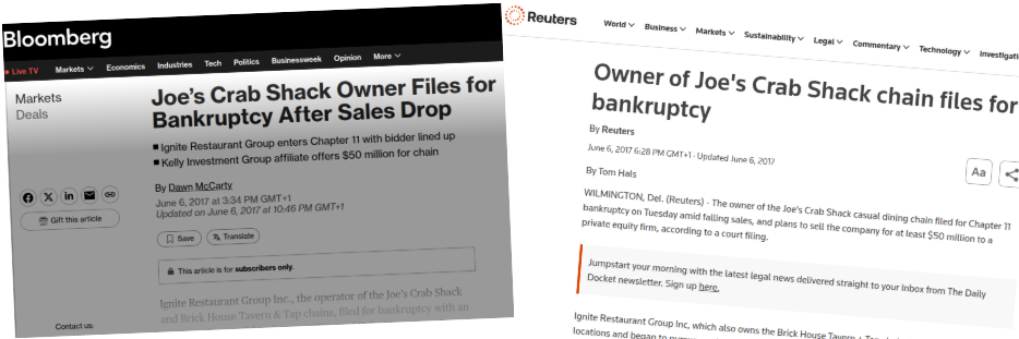 Tapa de Bloomberg y Reuters declarando la quiebra en el 2017