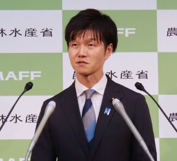Minister of Agriculture, Forestry and Fisheries Norikazu Suzuki during the press conference