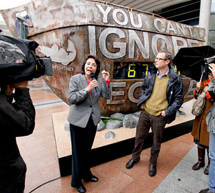 Hugh Fearnley-Whittingstall (R) and Maria Damanaki (L) during the launch of Fish Fight Campaign. (Photo: EC)