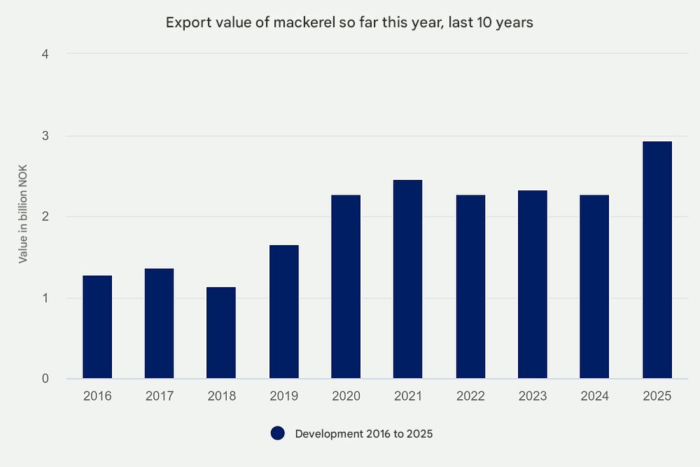 The delayed start to the fishing season and a significantly lower global quota contributed to the decrease in export volume. However, as Jan Eirik Johnsen points out, this scarcity pushed prices upward. A new price record was set for mackerel under 600 grams, with an average of NOK 37.61 per kg (approximately $3.74 per kg), a remarkable 24.5% increase from the previous record set in February 2025, and a 54% increase from August 2024.
