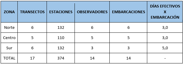 El informe destaca que las mayores capturas se concentraron en el norte, a una distancia de 75 a 100 millas náuticas de la costa, con valores que superaron las 9 toneladas. En contraste, en las zonas centro y sur, la distribución fue más dispersa y las capturas de menor magnitud.