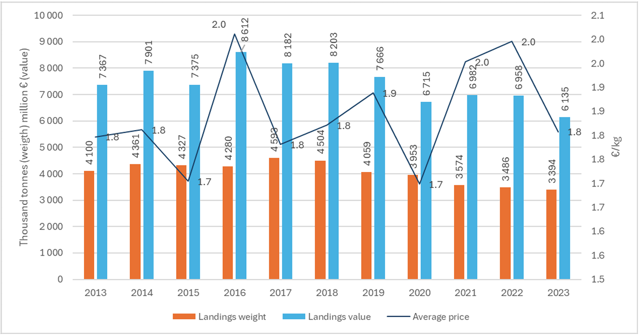 Trends on landings in weight and value and average landed price. Source: Member States data submissions under the 2025 Fleet Economic data call. (click on the image to enlarge ot)