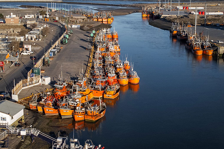 Flota tangonera amarilla del puerto de Rawson. Foto: Revista Puerto