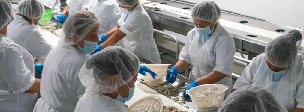 Procesamiento de camarón en la planta de Camaco. Foto: Grupo Calesa