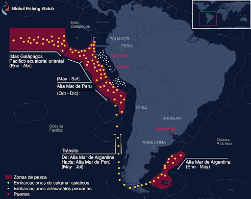 marca un momento de inflexión en los principales corredores de pesca de calamar del hemisferio sur.